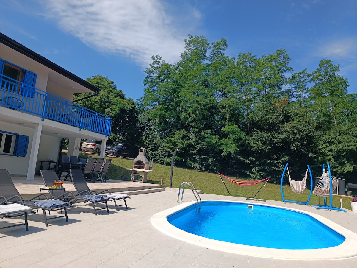 Disfrute del hermoso ambiente de este alojamiento de lujo en la naturaleza con vistas panorámicas. Stone House Baracchi es una antigua casa de piedra completamente renovada en 2023. Frente a la casa hay una gran piscina de 14,50 metros de largo y 65 m2 de superficie. La casa tiene un jardín de 5500 m2. La primera playa se encuentra a 10 km, mientras que el centro turístico de Rabac, con hermosas playas, se encuentra a 20 km.