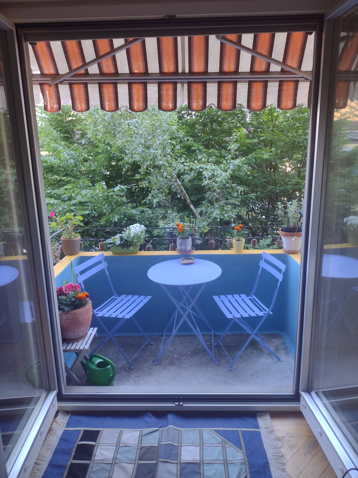 El espacioso estudio renovado (30 m2) en el tercer piso tiene un baño privado separado. Tiene una cómoda cama tamaño king, nevera, cafetera, hervidor de agua y una mesa para trabajar con wifi de alta velocidad. En el pasillo encontrarás una pequeña cocina con microondas, lavavajillas, fregadero, lavadora/secadora e impresora/escáner/fotocopiadora. Nuestra calefacción funciona con el calor de la tierra y somos casi neutros en CO2 gracias a nuestro techo solar.