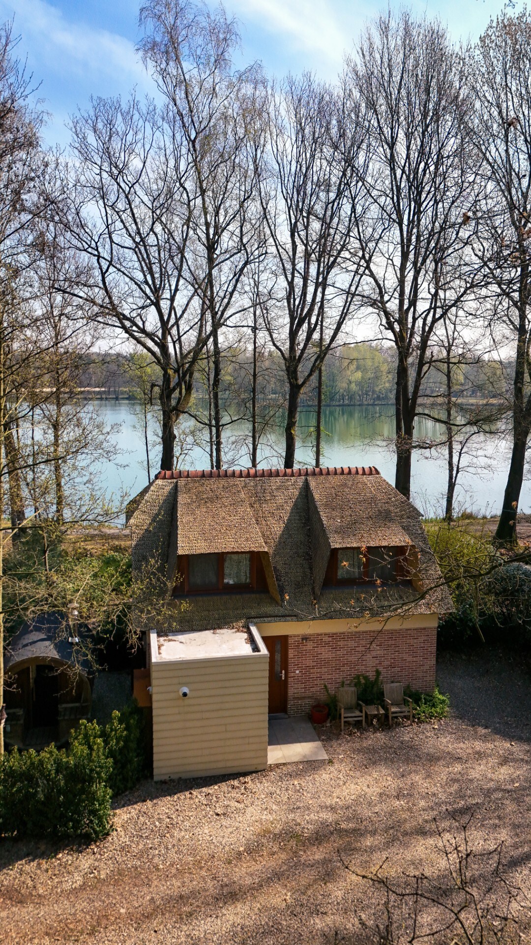Chalet tranquilo con jardín situado junto a un estanque de peces.